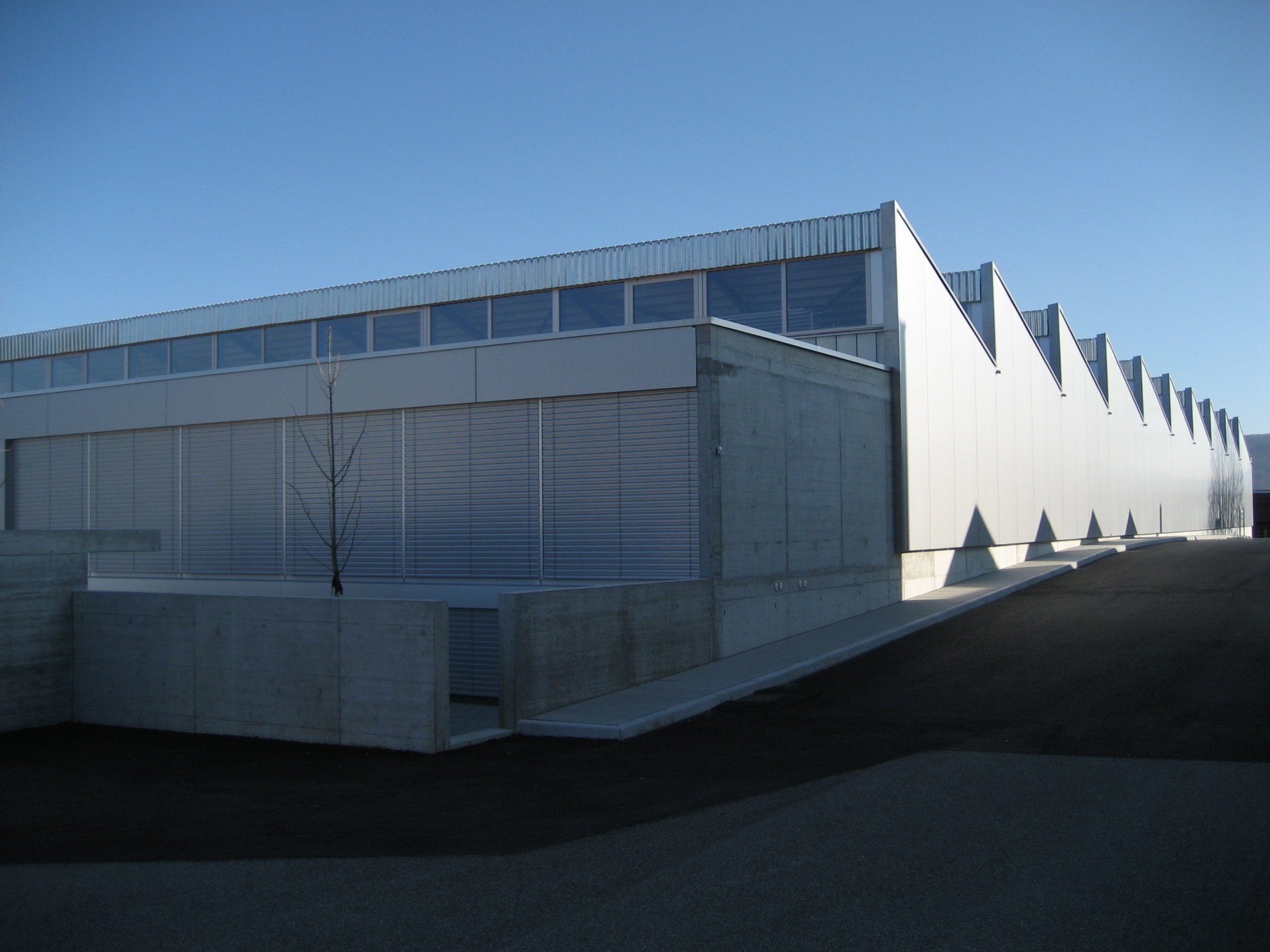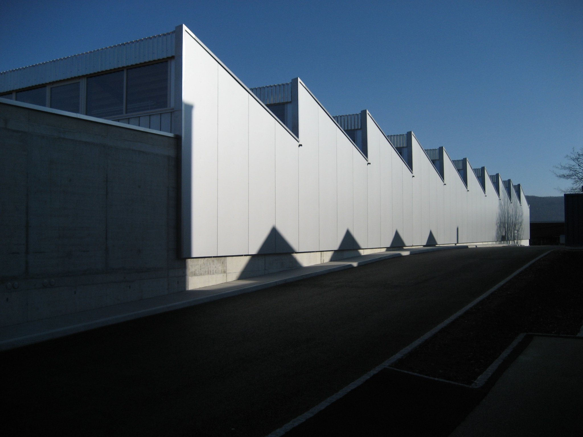 Durch die Ausrichtung der Leichtbänder in der Shedkonstruktion Richtung Norden Wird eine optimale natürliche Belichtung der Nutzflächen gewährleistet.